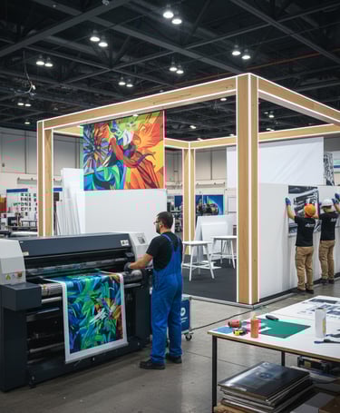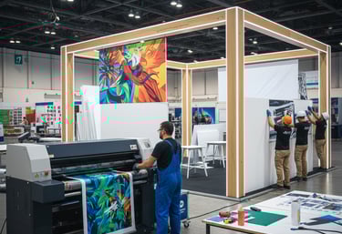 Impresión y colocación de lonas, viniles, paneles y elementos visuales para complementar cualquier montaje.